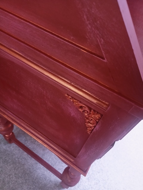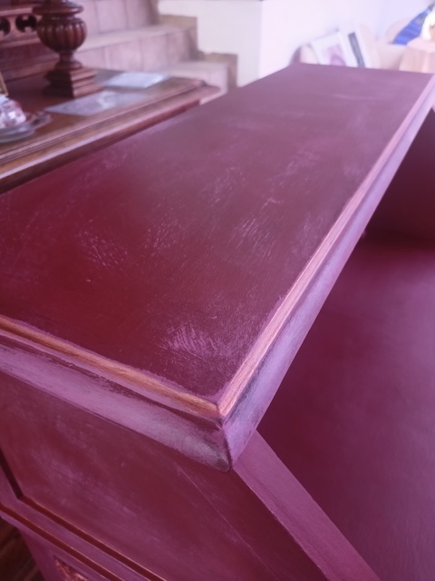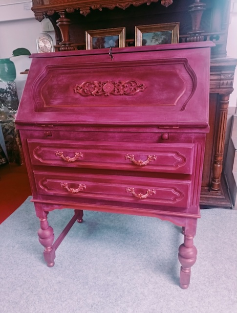 Schreibtisch komplett aufgearbeitet. Farbgebung: Rubi Force und Beere.