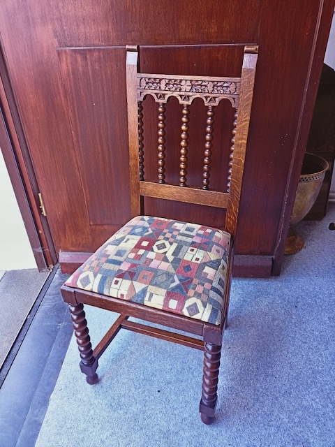 Antike Stühle, 6er Set, Maße: Höhe total: 98 cm, Breite total: 47 cm, Sitzhöhe: 48 cm, Sitztiefe: 42 cm, Sitzbreite: 34/44 cm. Kaufpreis: 350,- €. Stoffwechsel möglich (Kostenpflichtig).