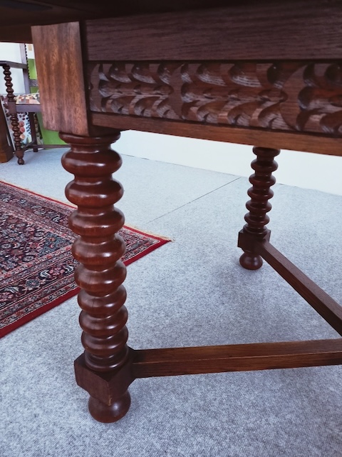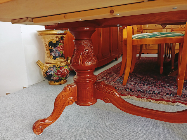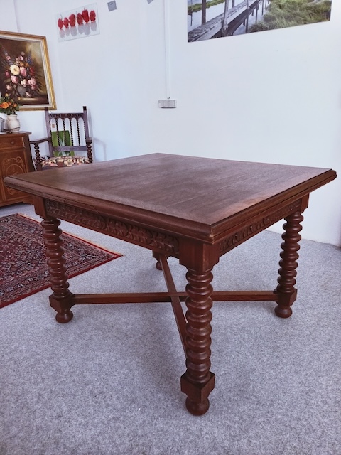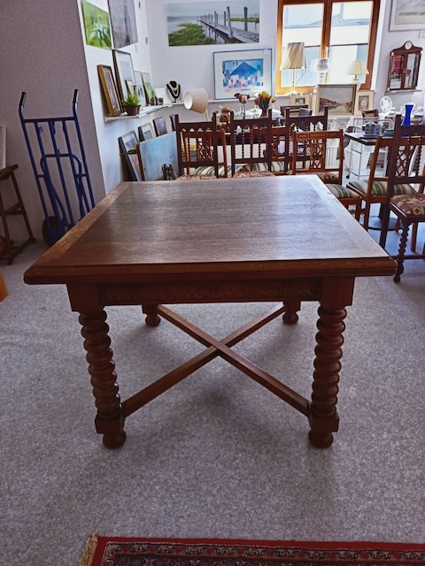 Gepflegter antiker Esszimmertisch, 110 X 100 cm bzw. 210 X 100 cm. Höhe 80 cm.