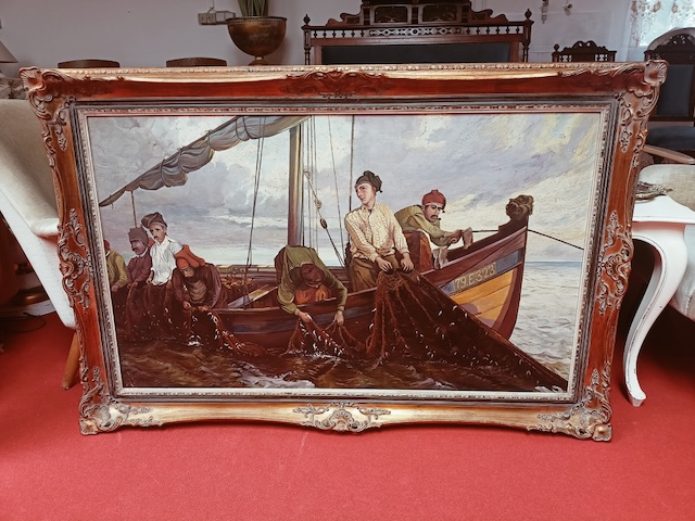 Sehr schönes Gemälde, Druck auf Leinwand, gerahmt. Rahmen mit leichten Macken.