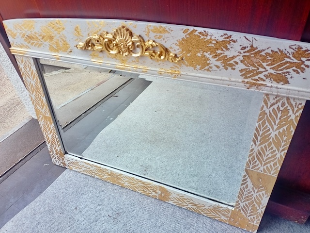 Traumhafter Spiegel in weiß und Blattgold mit Verzierung durch Ornament. Spiegel mit Schliff, Rahmen aus Holz.