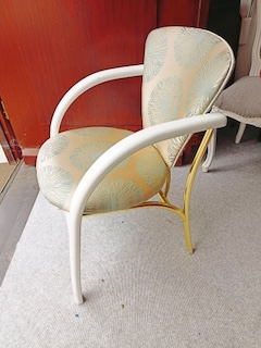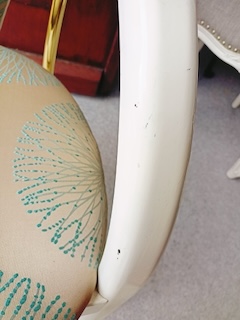 Einige Zeit als Schaustück genutzt, jetzt günstig abzugeben. Bezug von Saum&Viebahn, Polsterung wie neu da nicht genutzt. Lack mit einigen Spuren. Kaufpreis: 50,- €.