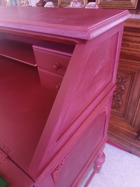 Schreibtisch komplett aufgearbeitet. Farbgebung: Rubi Force und Beere.